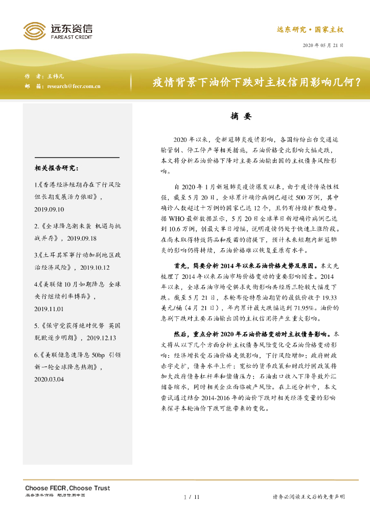 远东资信:疫情背景下油价下跌对主权信用影响几何?.pdf