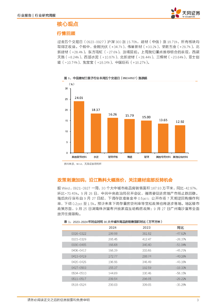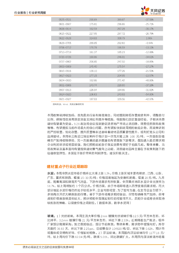 天风证券:建筑材料行业研究周报:政策刺激加码,沿江熟料大幅涨价,关注建材底部反转机会.pdf
