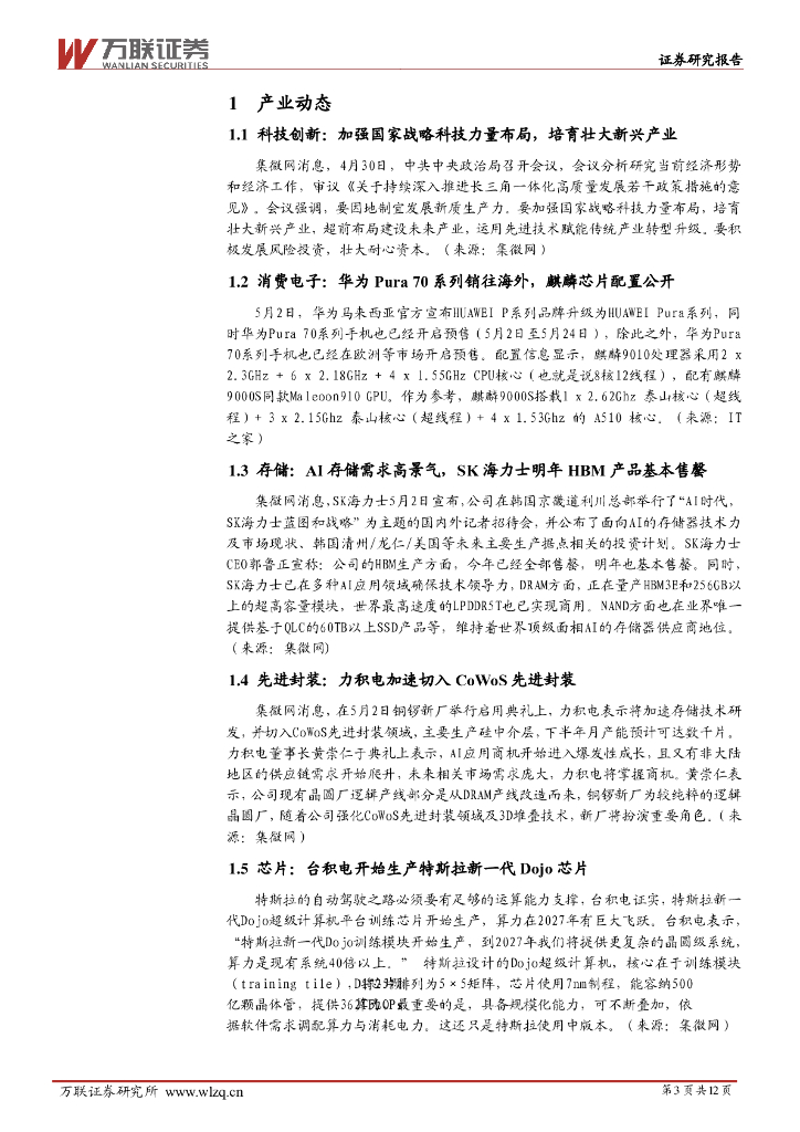 万联证券:电子行业周观点:AI存储需求高景气,晶圆大厂切入先进封装赛道.pdf
