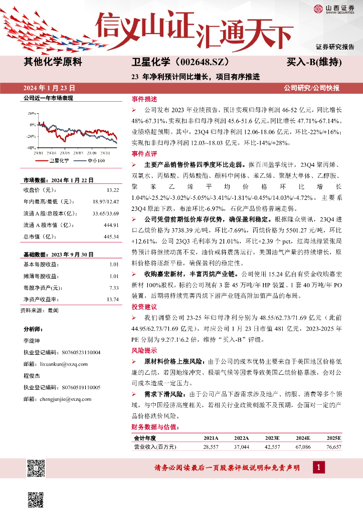 山西证券:卫星化学(002648)-23年净利预计同比增长,项目有序推进.pdf