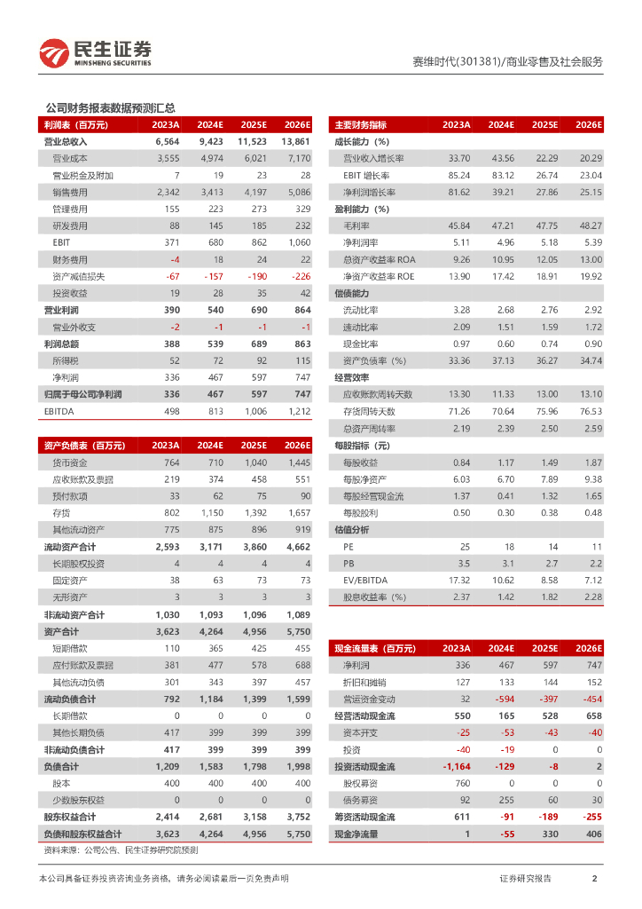 民生证券:赛维时代(301381)-2024年中报点评:新渠道发力增长亮眼,头部品牌持续高增.pdf
