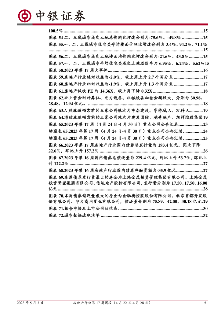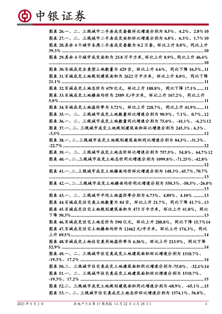 中银证券:房地产行业第17周周报:新房二手房成交环比增速转正,百强房企4月单月销售额增速略有放缓.pdf