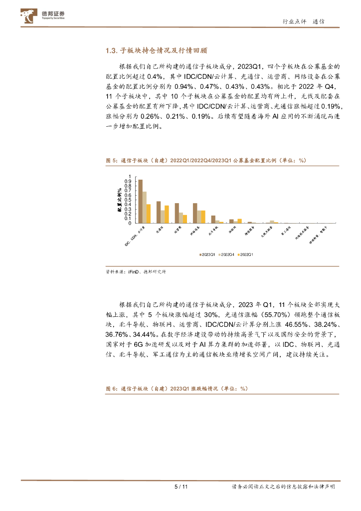 德邦证券:通信:2023Q1通信行业在公募配置中持续上升,光模块概念指数热度高涨.pdf