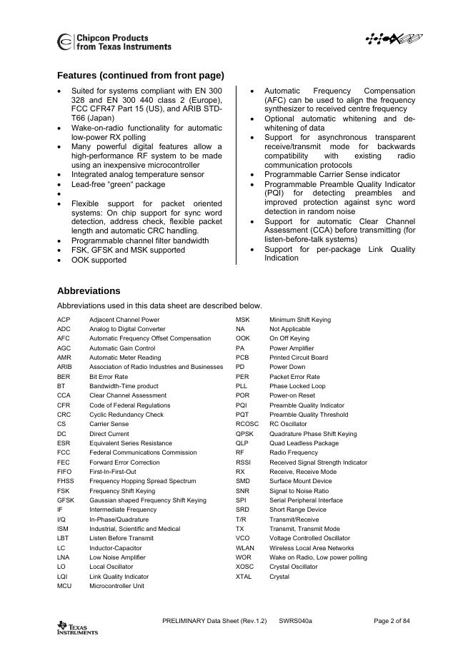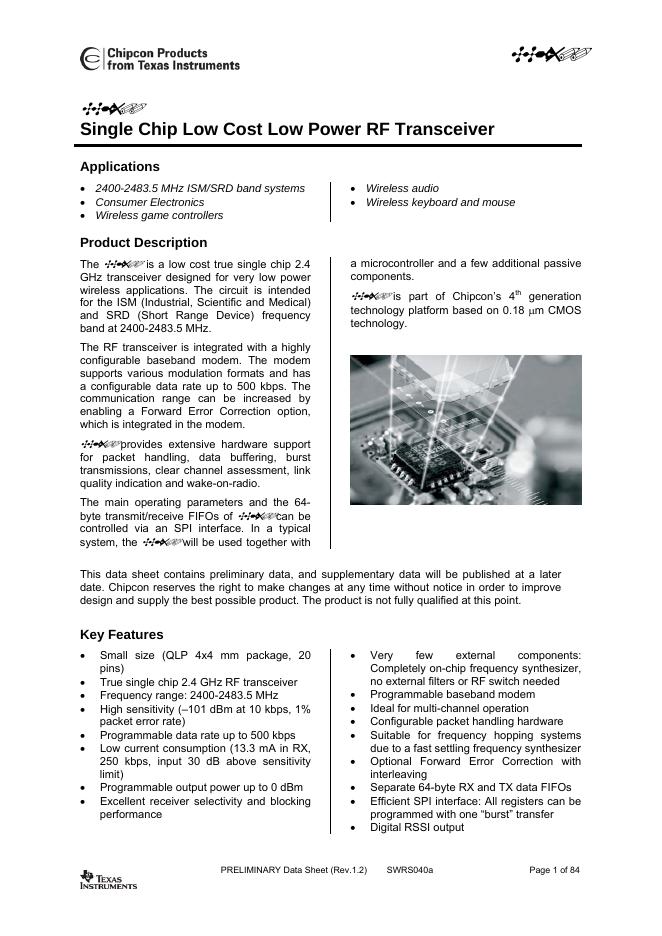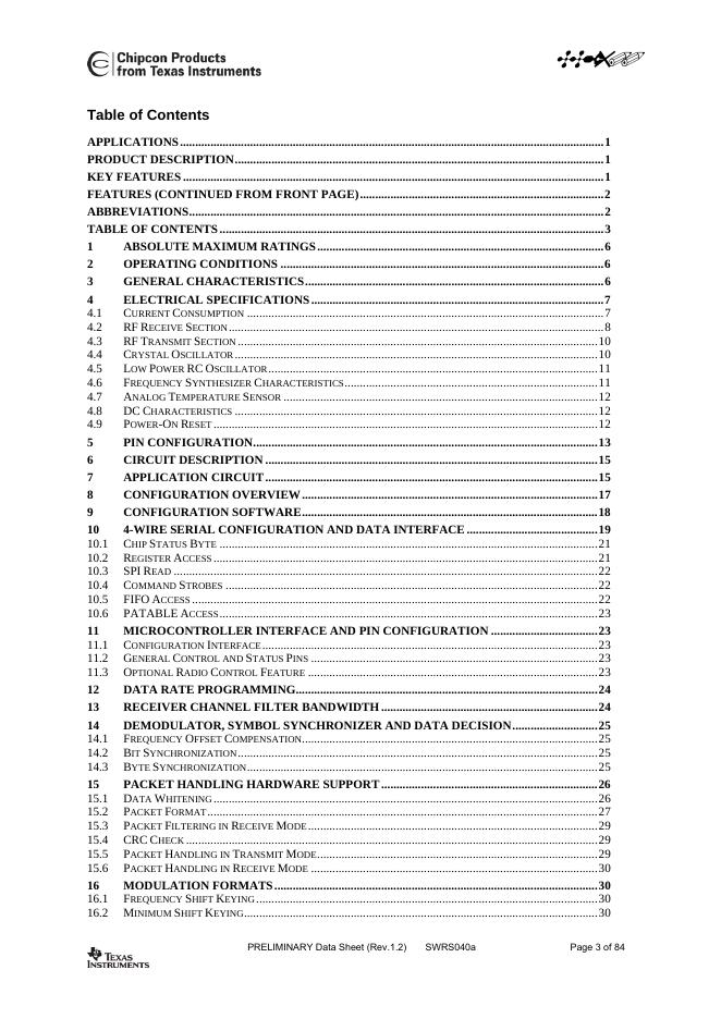TEXAS INSTRUMENTS CC2500 Single Chip Low Cost Low Power RF Transceiver 数据手册.pdf