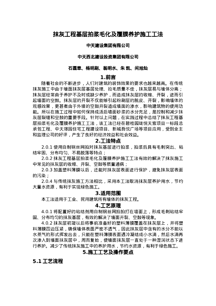 QHGF-2022088 抹灰工程基层拍浆毛化及覆膜养护施工工法.doc
