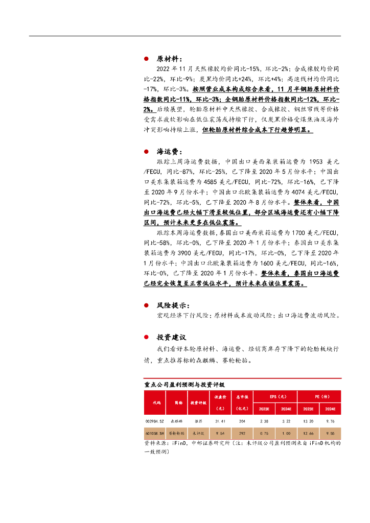 中邮证券:轮胎行业跟踪:原材料、海运费持续下降,泰国出口量迎来反弹.pdf