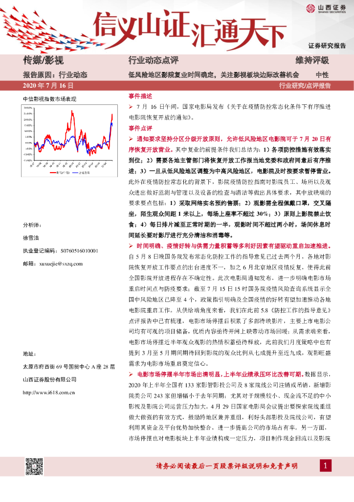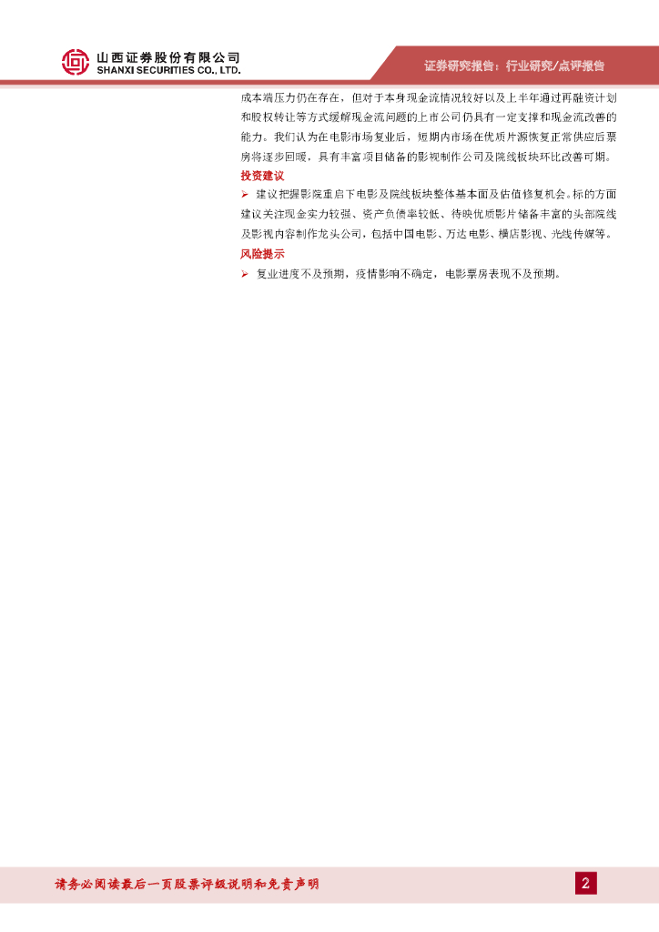 山西证券:传媒/影视:低风险地区影院复业时间确定,关注影视板块边际改善机会.pdf