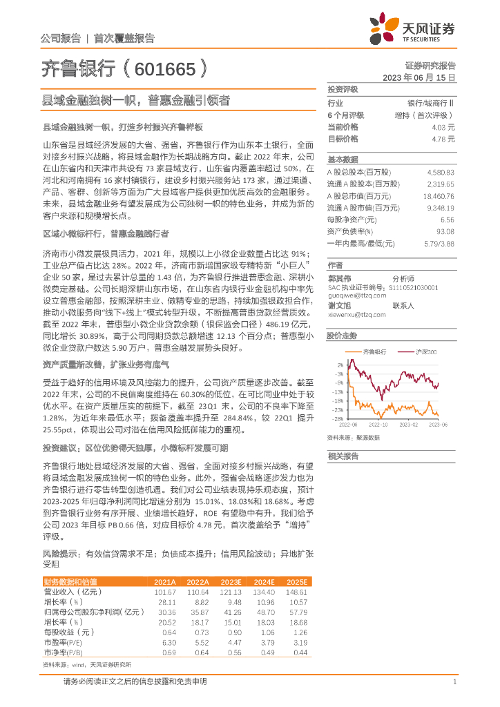 天风证券:齐鲁银行(601665)-县域金融独树一帜,普惠金融引领者.pdf