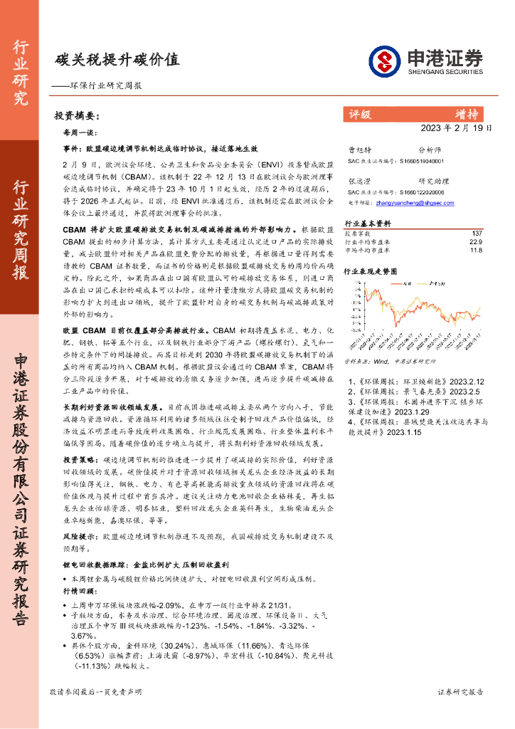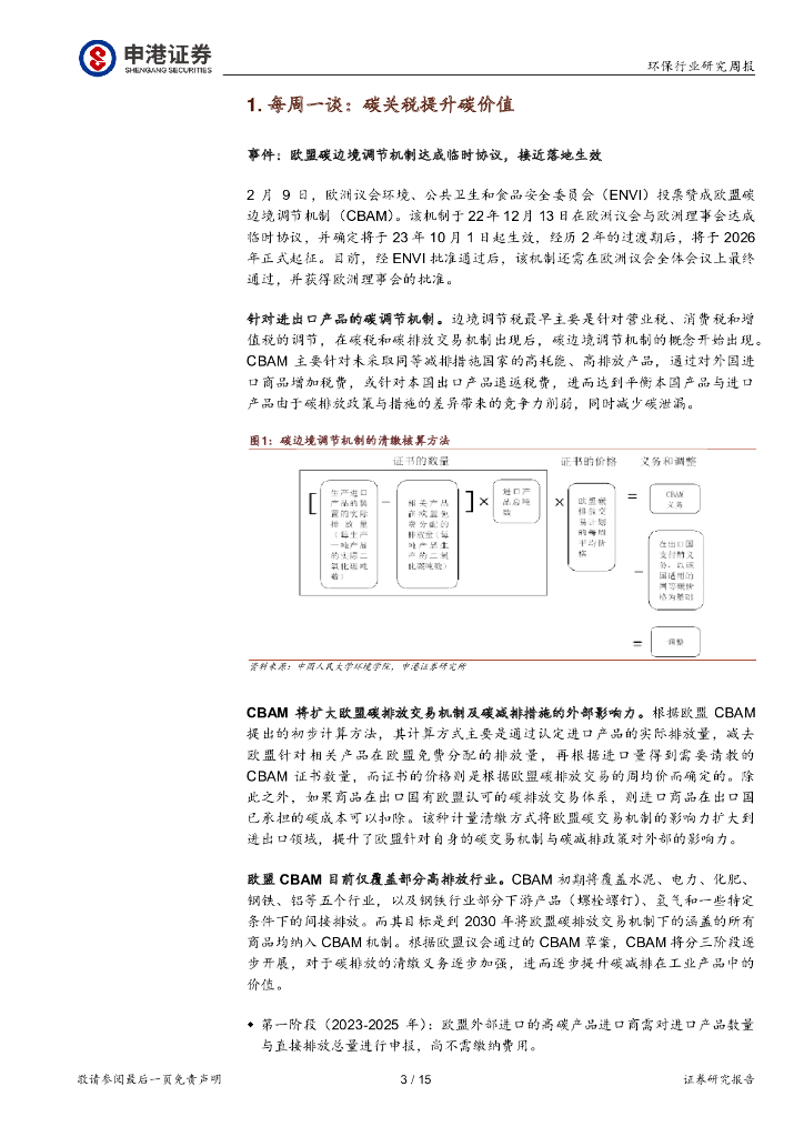 申港证券:环保行业研究周报:碳关税提升碳价值.pdf