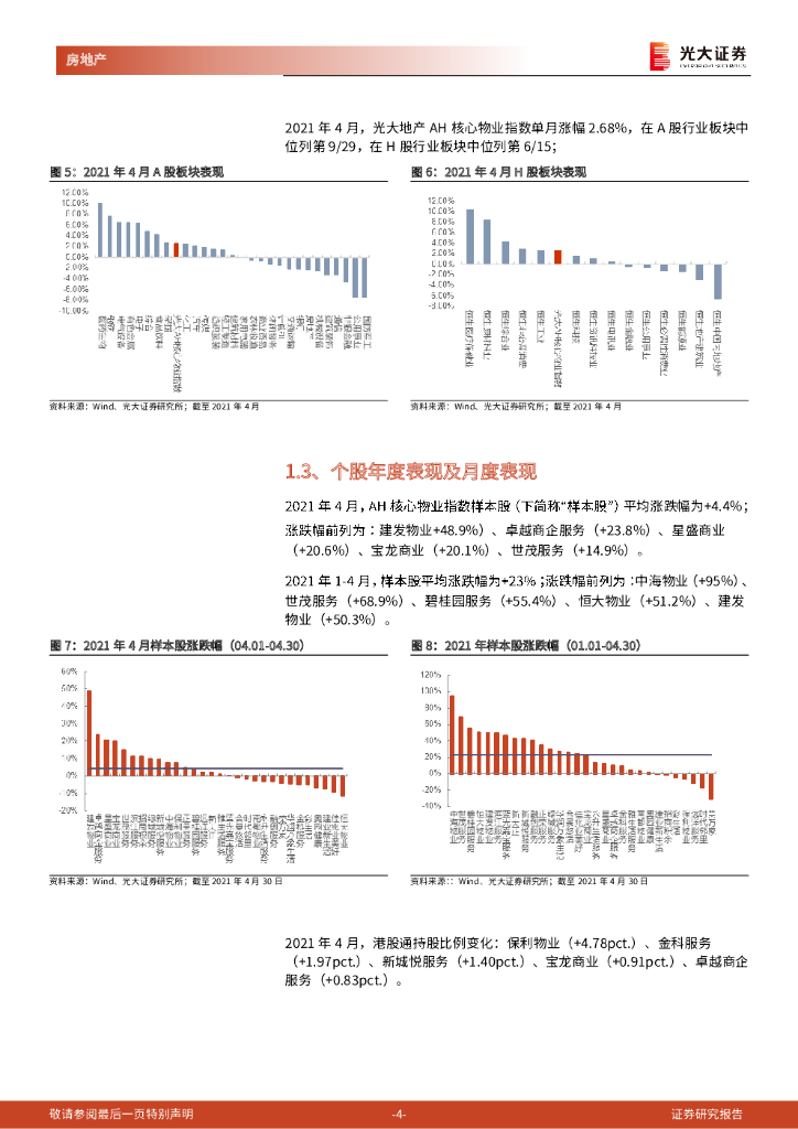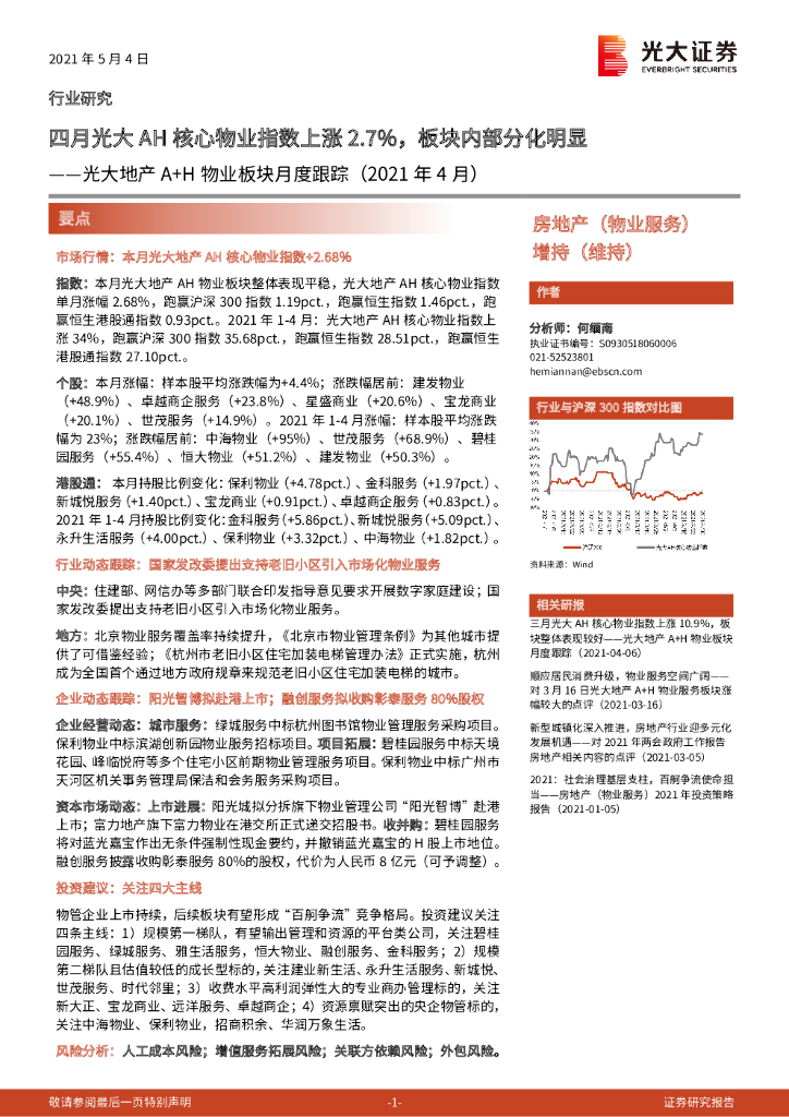 光大证券:光大地产A+H物业板块月度跟踪(2021年4月):四月光大AH核心物业指数上涨2.7%,板块内部分化明显.pdf