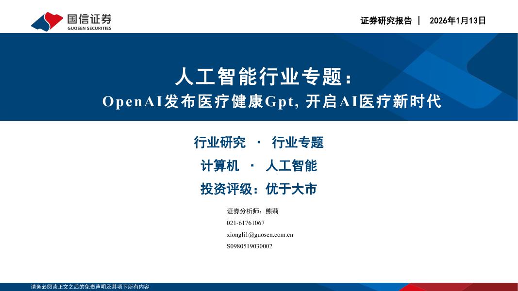 国信证券:人工智能行业专题:OpenAI发布医疗健康Gpt,开启AI医疗新时代.pdf