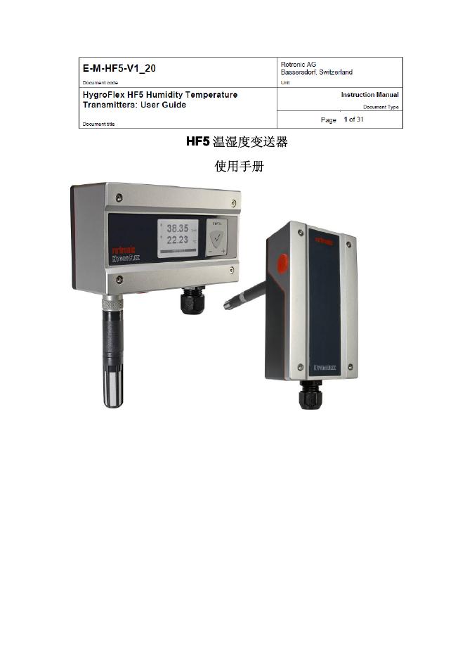HF5 温湿度变送器 使用手册.pdf