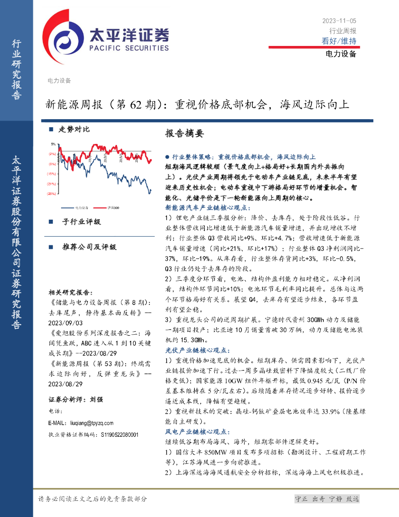 太平洋证券:新能源周报(第62期):重视价格底部机会,海风边际向上.pdf