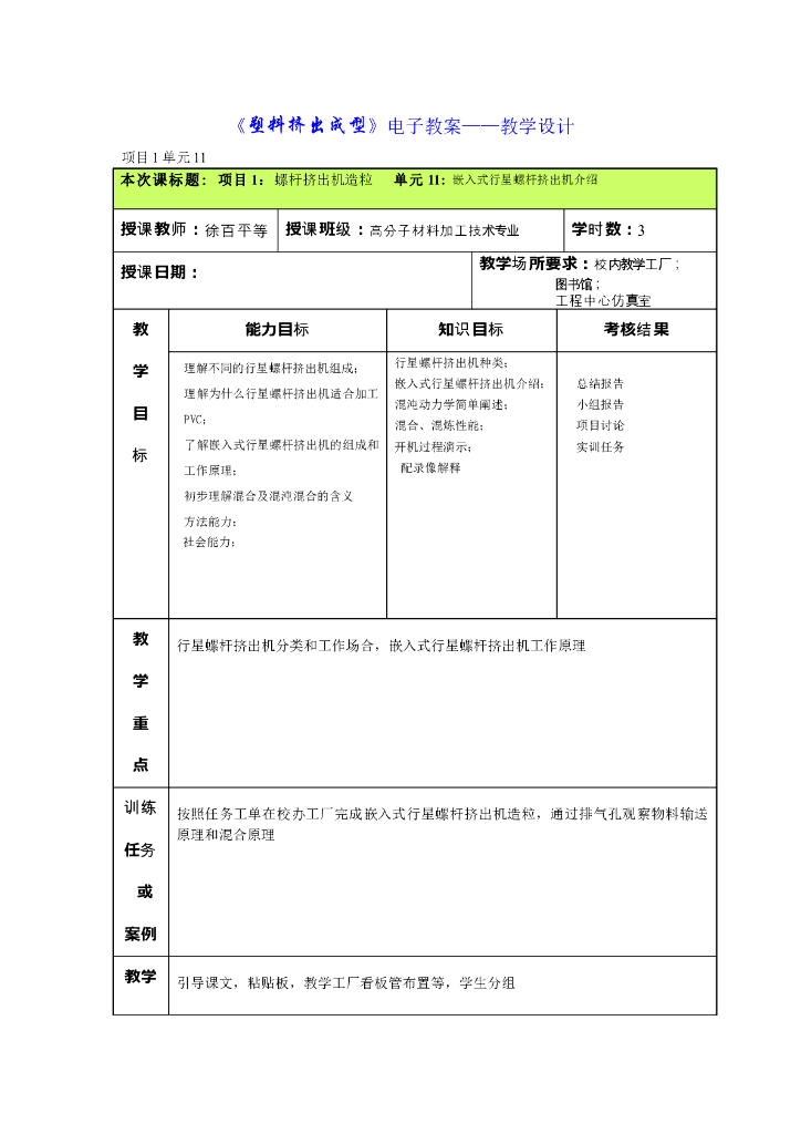 《塑料挤出成型》电子教案-单元11:嵌入式行星螺杆挤出机介绍.pdf