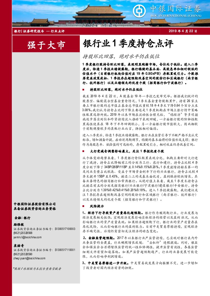 中银国际:银行业1季度持仓点评:持股环比回落,绝对水平仍在低位.pdf