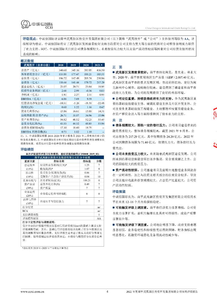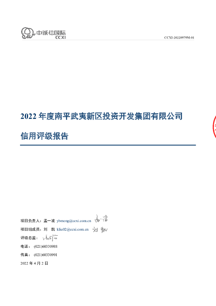 中诚信:2022年度南平武夷新区投资开发集团有限公司信用评级报告.pdf