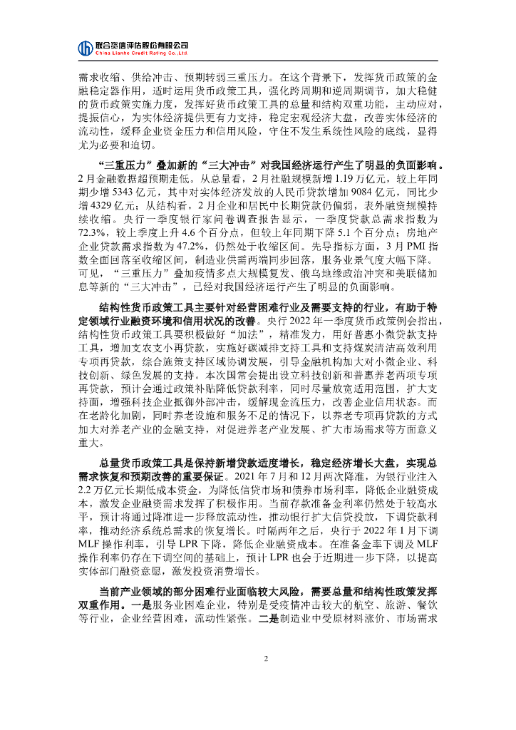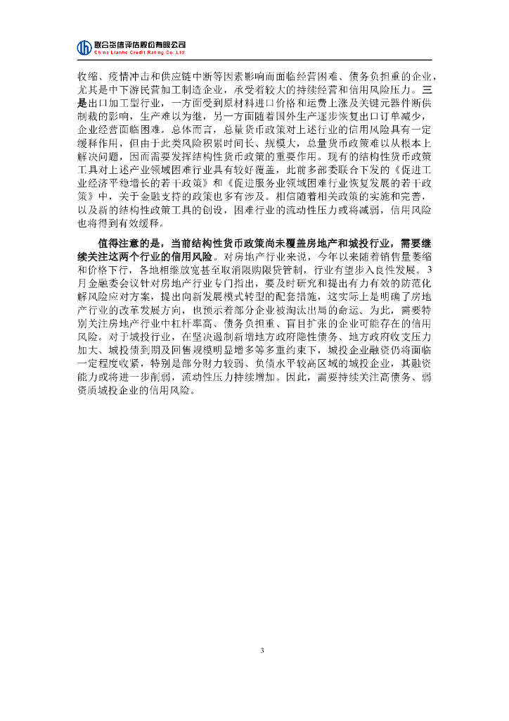 联合资信:货币政策适时加力,有望缓解困难行业资金压力-国常会货币政策述评.doc