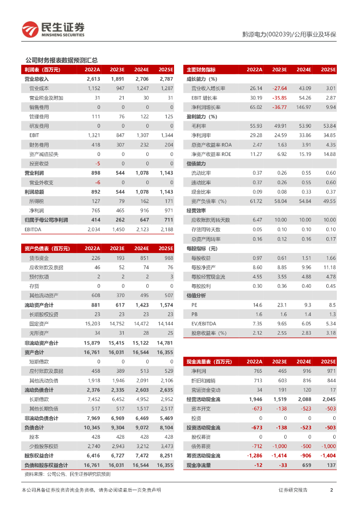 民生证券:黔源电力(002039)-2023年业绩预告点评:电量持续改善,资产整合或具良机.pdf