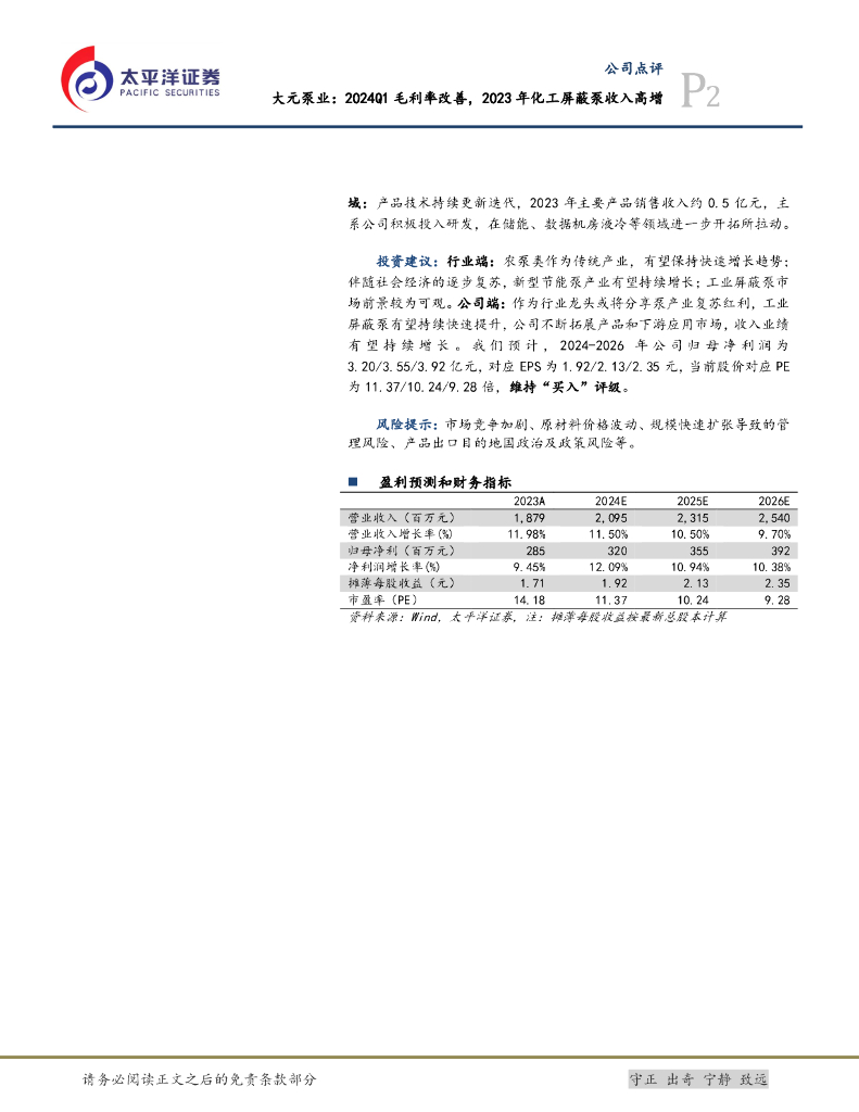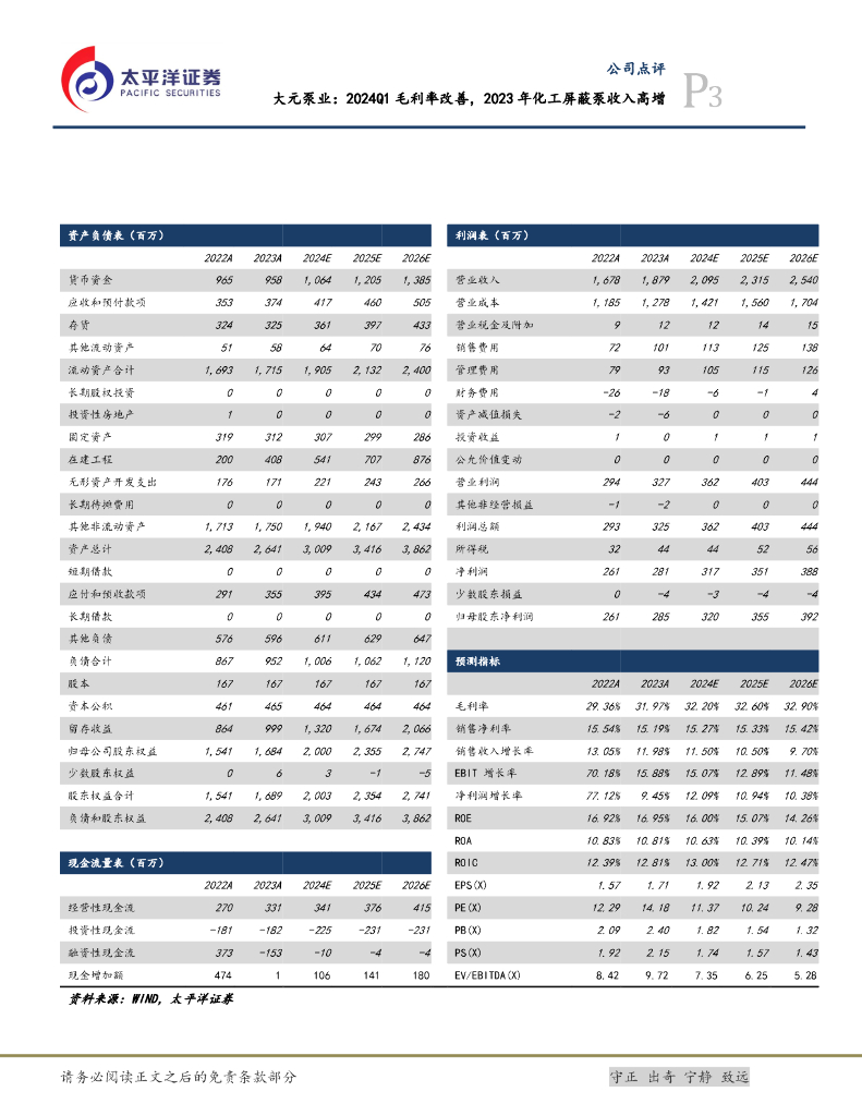 太平洋证券:大元泵业:2024Q1毛利率改善,2023年化工屏蔽泵收入高增.pdf