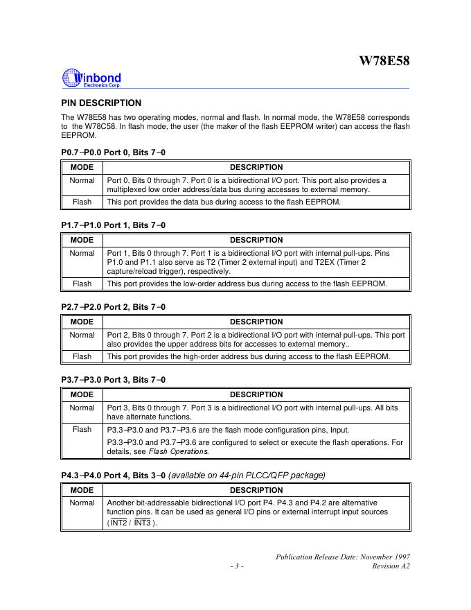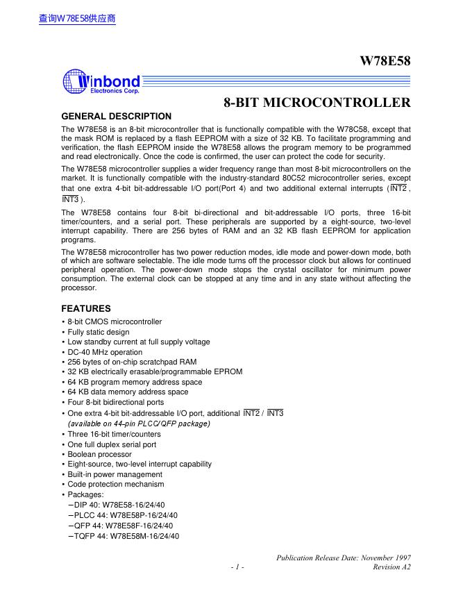 Winbond W78E58 8-BIT MICROCONTROLLER 数据手册.pdf