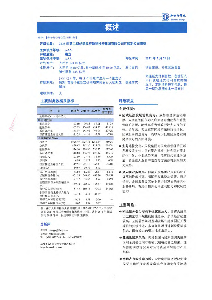 新世纪:2022年第二期成都天府新区投资集团有限公司可续期公司债券信用评级报告.pdf