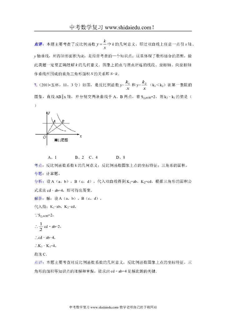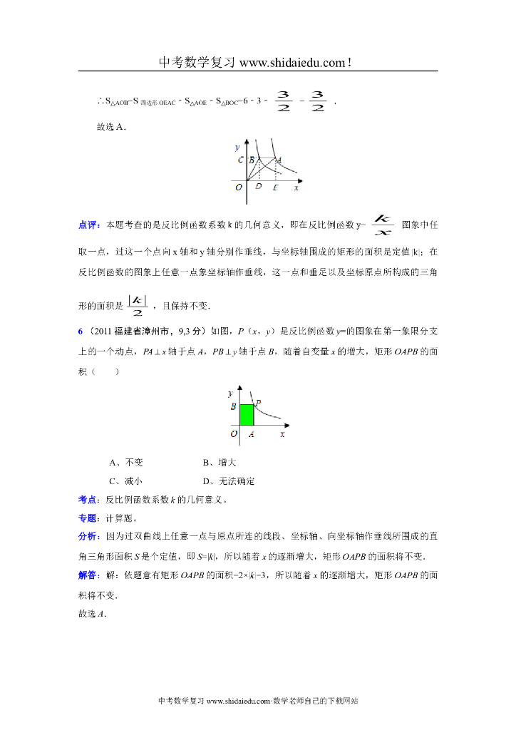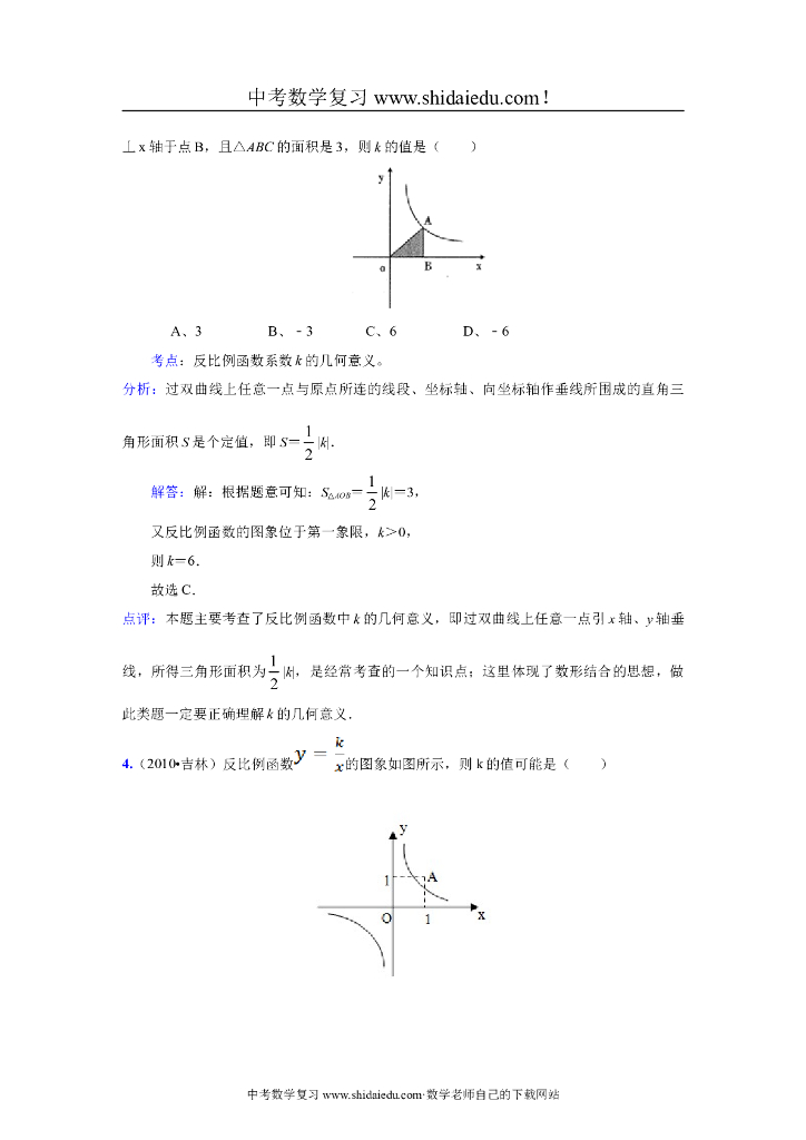 中考数学真题解析反比例函数意义比例系数k的几何意义(含答案).doc