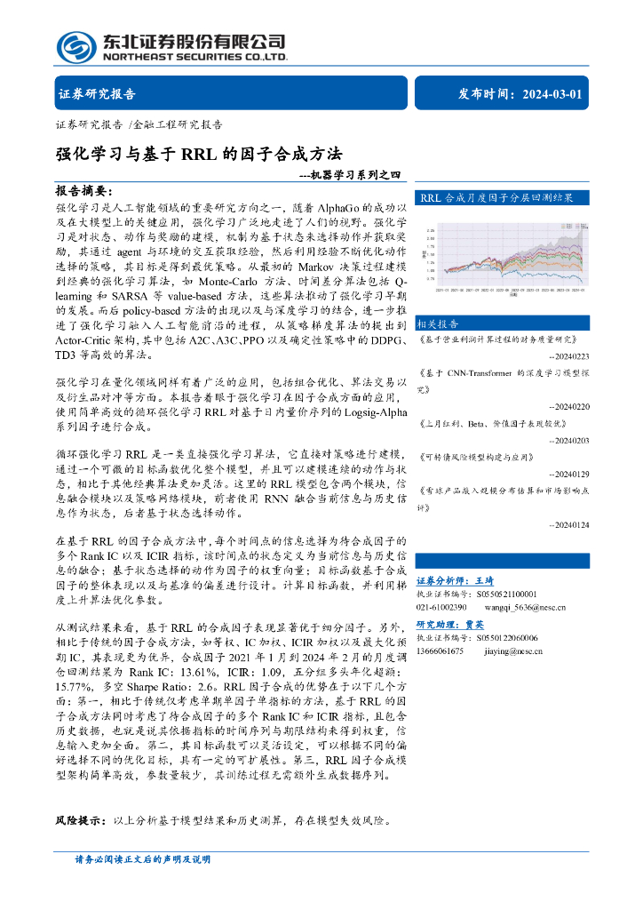 东北证券:机器学习系列之四:强化学习与基于RRL的因子合成方法.pdf