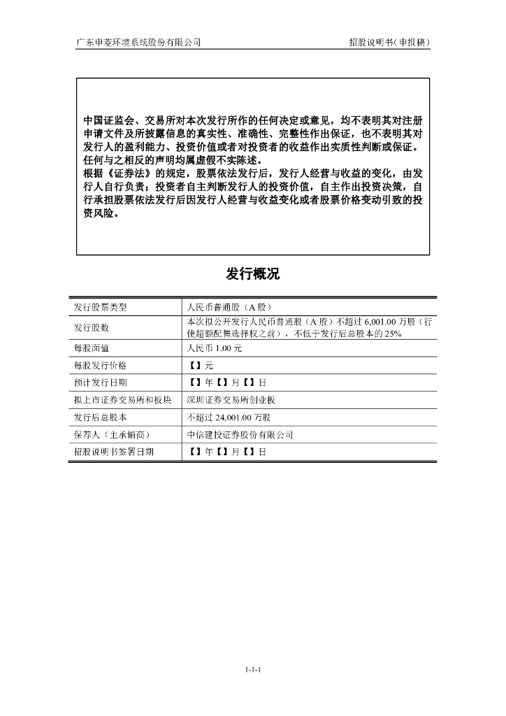 广东申菱环境系统股份有限公司深交所创业板IPO上市招股说明书.pdf