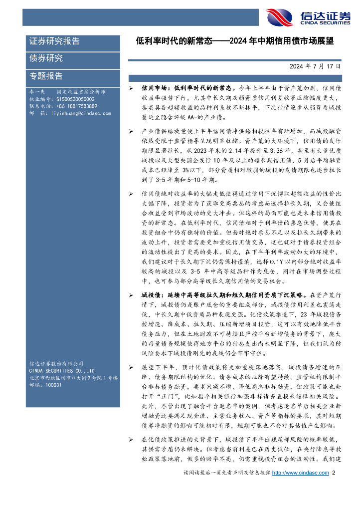 信达证券:2024年中期信用债市场展望:低利率时代的新常态.pdf
