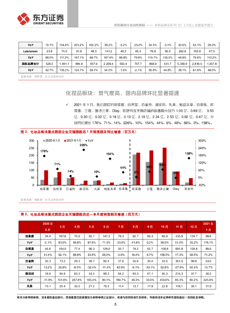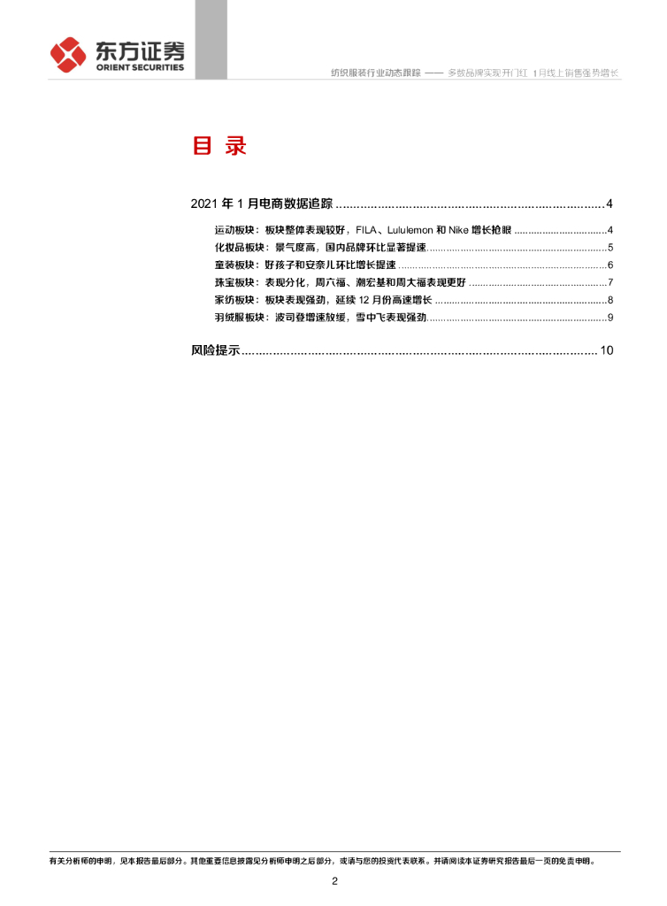 东方证券:纺服及时尚消费品2021年1月电商数据分析:多数品牌实现开门红1月线上销售强势增长.pdf