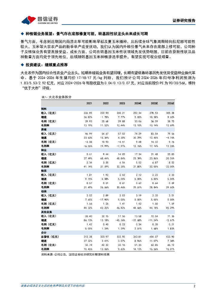 国信证券:大北农(002385)-饲料、种子业务经营正常,生猪业务受益行情回暖.pdf