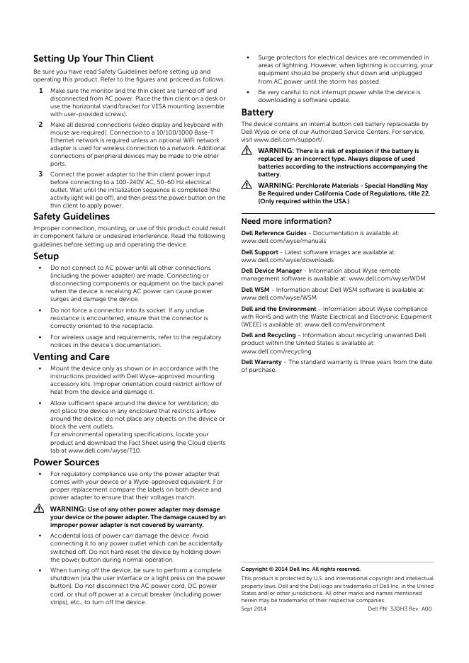 戴尔Wyse 3010/3050(T级瘦客户端,型号Tx0)快速入门指南.pdf
