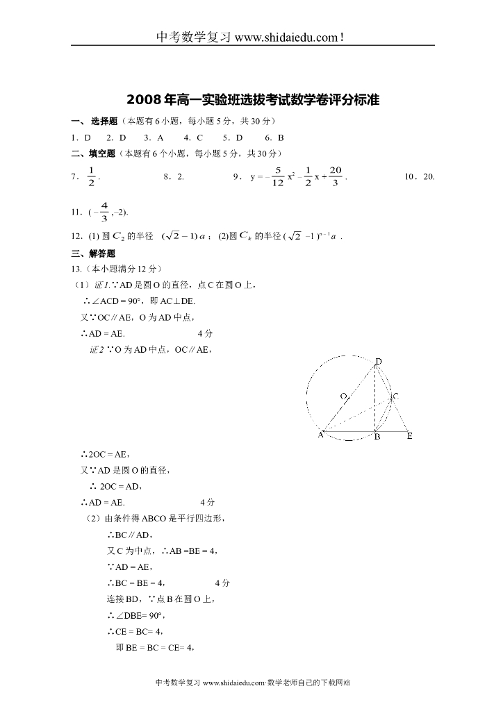 长沙市高中四大名校自主招生考试试卷附答案(中考、理科数学竞赛必备)工作总结.doc