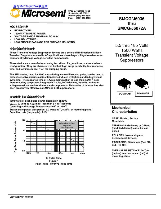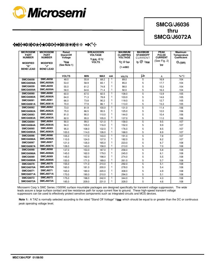 Microsemi SMCG/J6036 thru SMCG/J6072A 数据手册.pdf