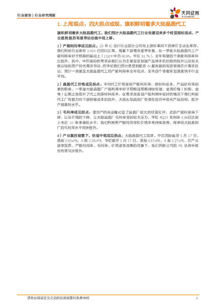 天风证券:半导体行业研究周报:四大拐点或现,旗帜鲜明看多大陆晶圆代工.pdf