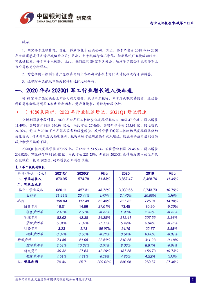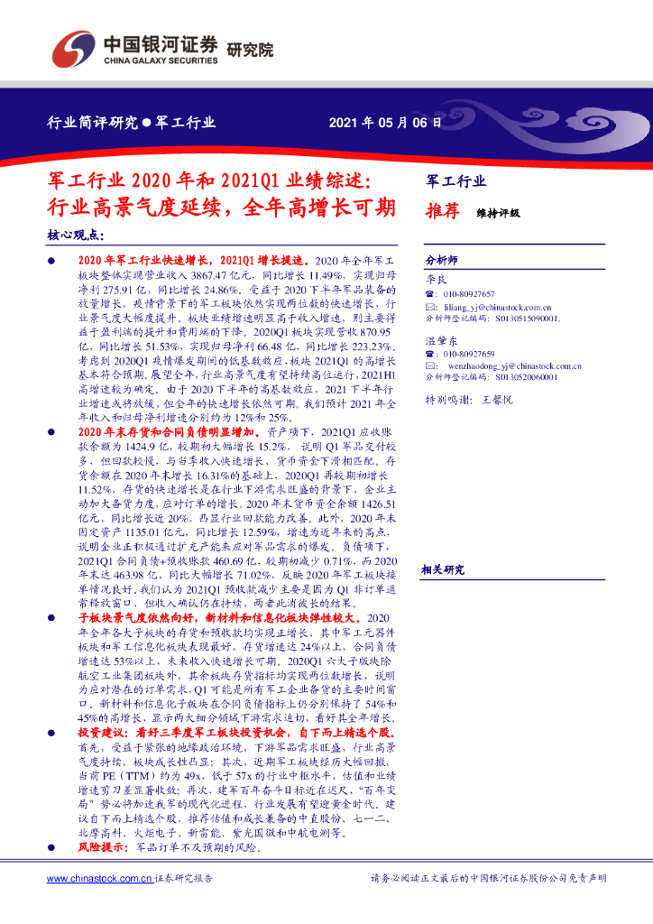 中国银河:军工行业2020年和2021Q1业绩综述:行业高景气度延续,全年高增长可期.pdf