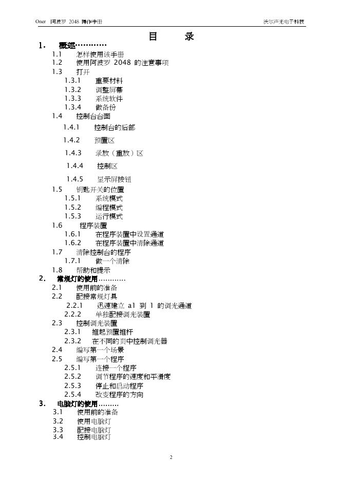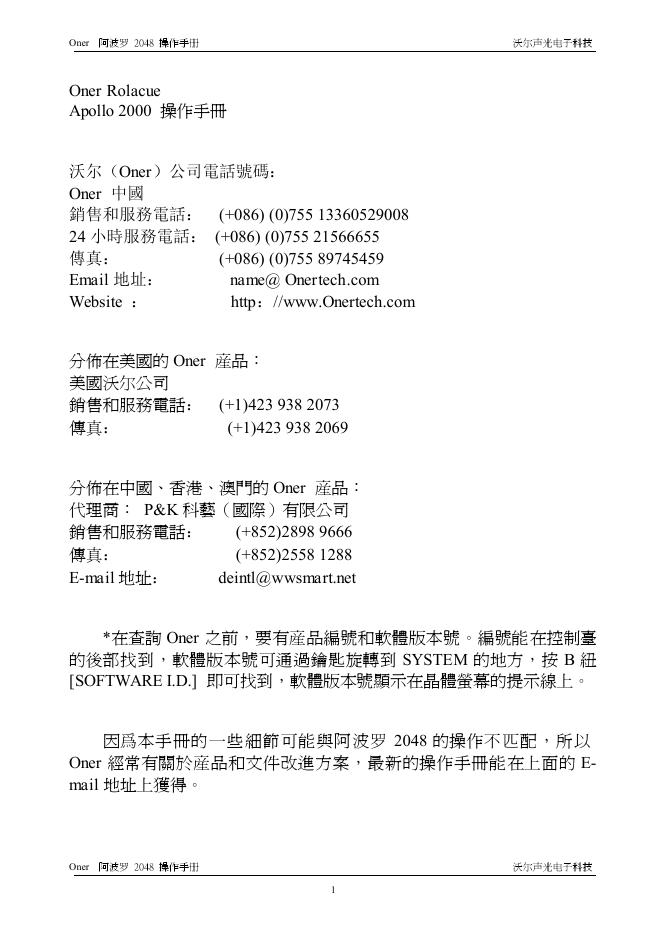 沃尔声光电子科技 Oner Rolacue Apollo 2000 操作手册.pdf
