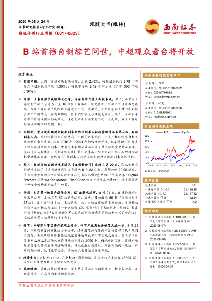 西南证券:影视传媒行业周报:B站首档自制综艺问世,中超观众看台将开放.pdf