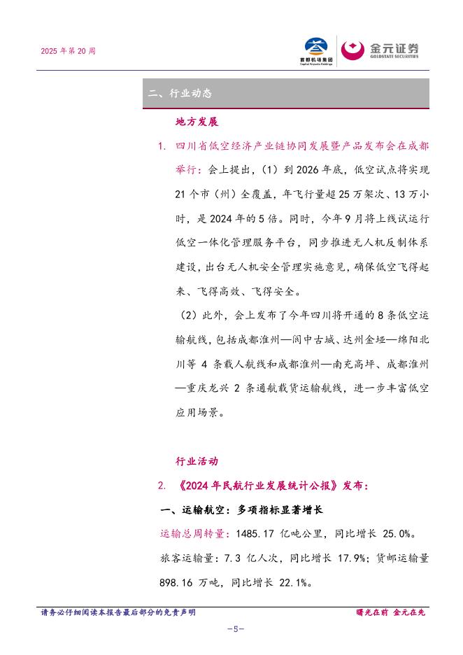 金元证券:低空经济周报:《2024年民航行业发展统计公报》发布,多项航空业指标显著增长.pdf