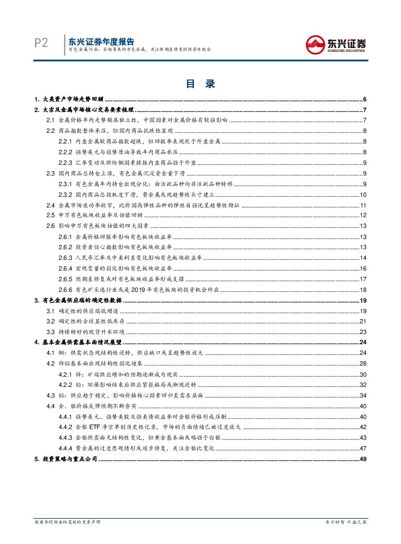 东兴证券:有色金属行业2019年年度投资策略报告:否极泰来的有色金属,关注预期差修复的投资性机会.pdf