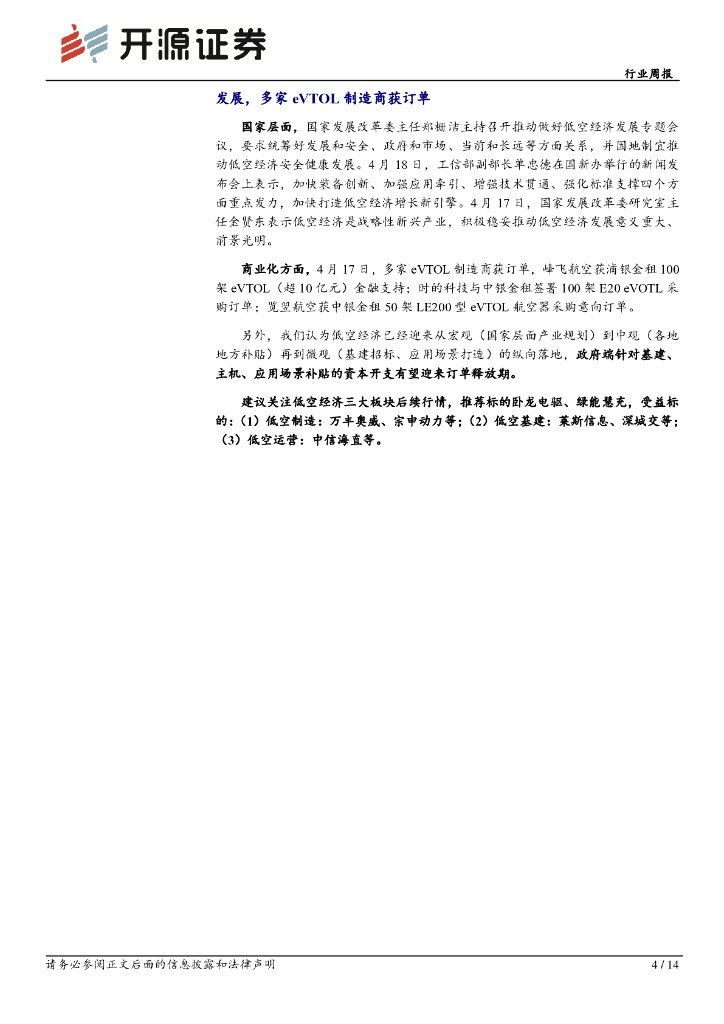 开源证券:电力设备行业周报:低空经济行业周报:(4月第3周)发改委召开低空经济发展专题会,峰飞、时的、览翌获订单.pdf