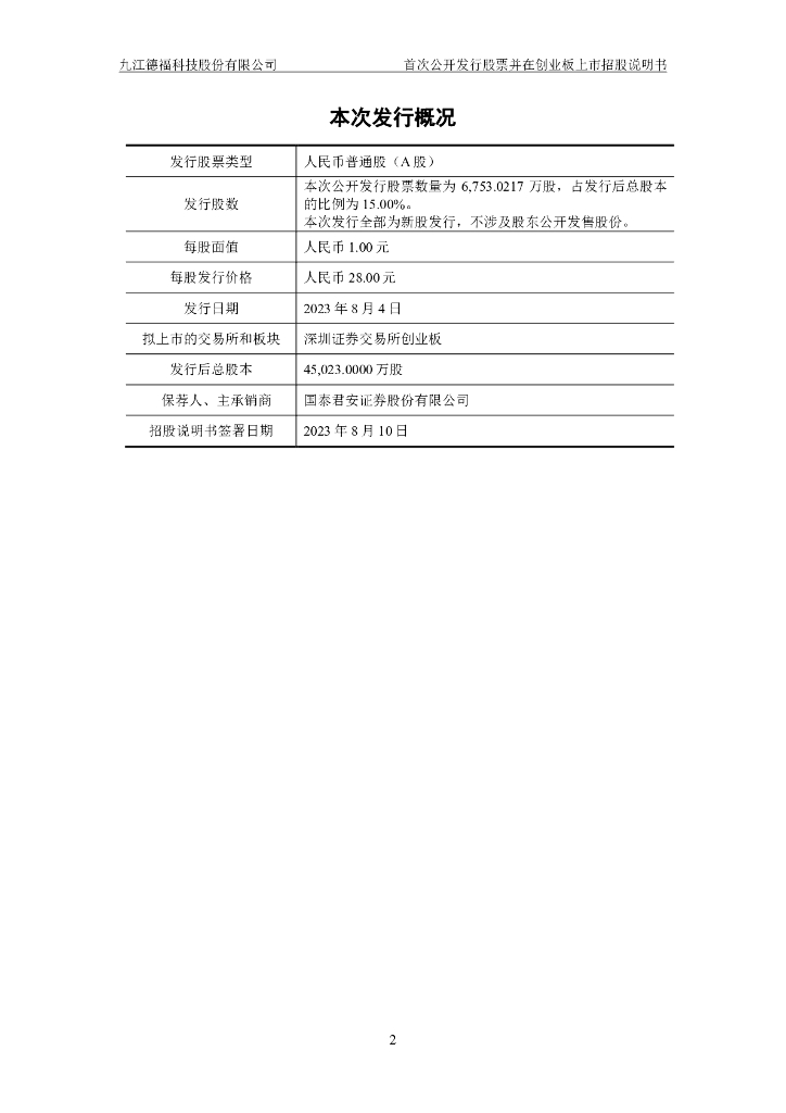 九江德福科技股份有限公司创业板IPO上市招股说明书.pdf