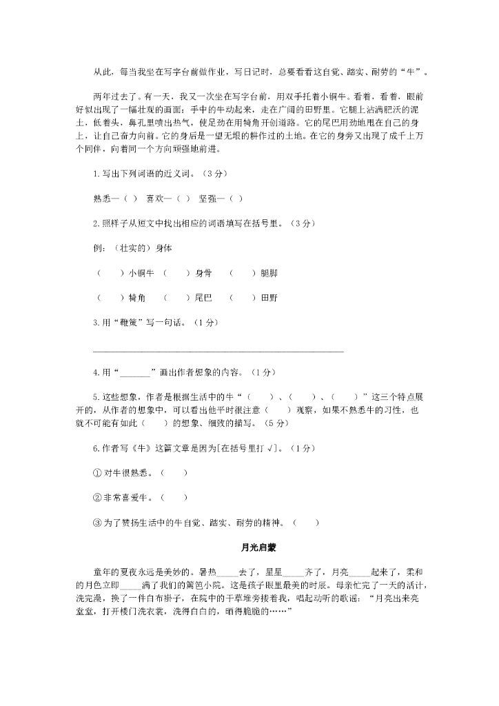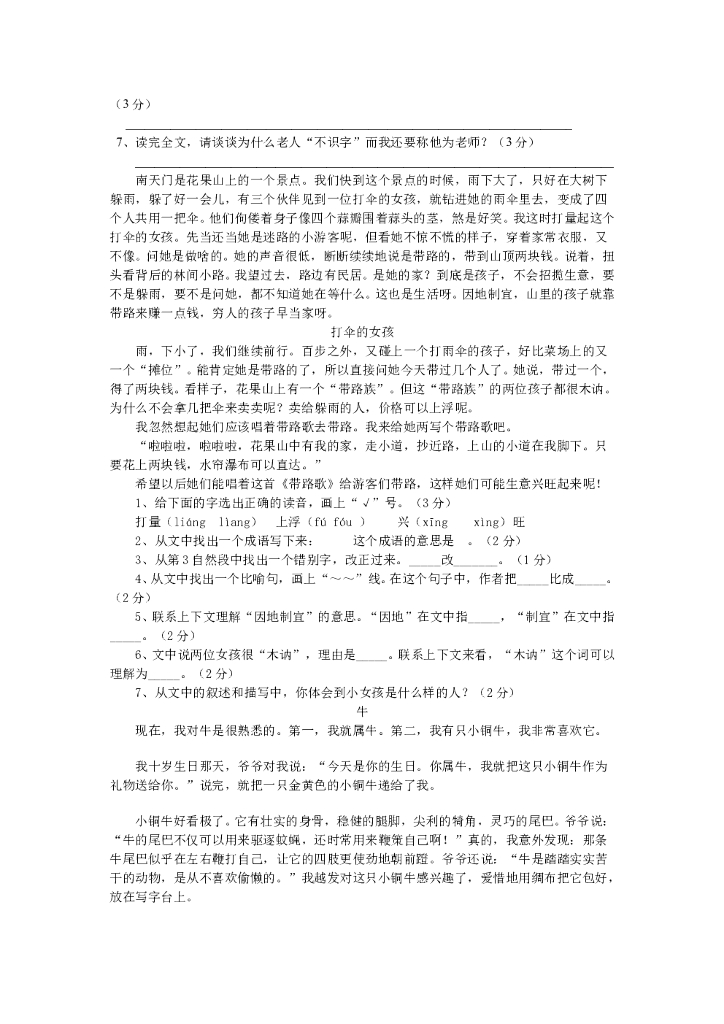 小学语文阅读训练80篇【59页】.doc