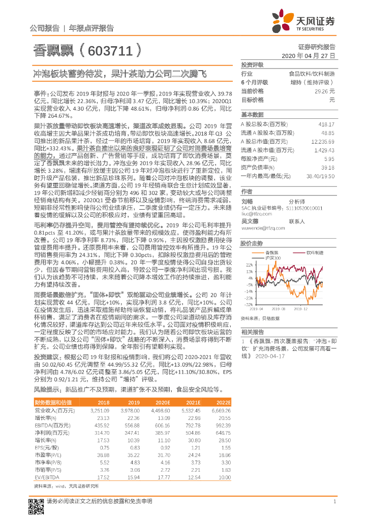 天风证券:香飘飘(603711)-冲泡板块蓄势待发,果汁茶助力公司二次腾飞.pdf