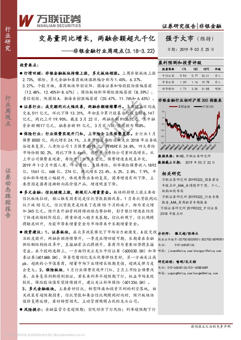万联证券:非银金融行业周观点:交易量同比增长,两融余额超九千亿.pdf