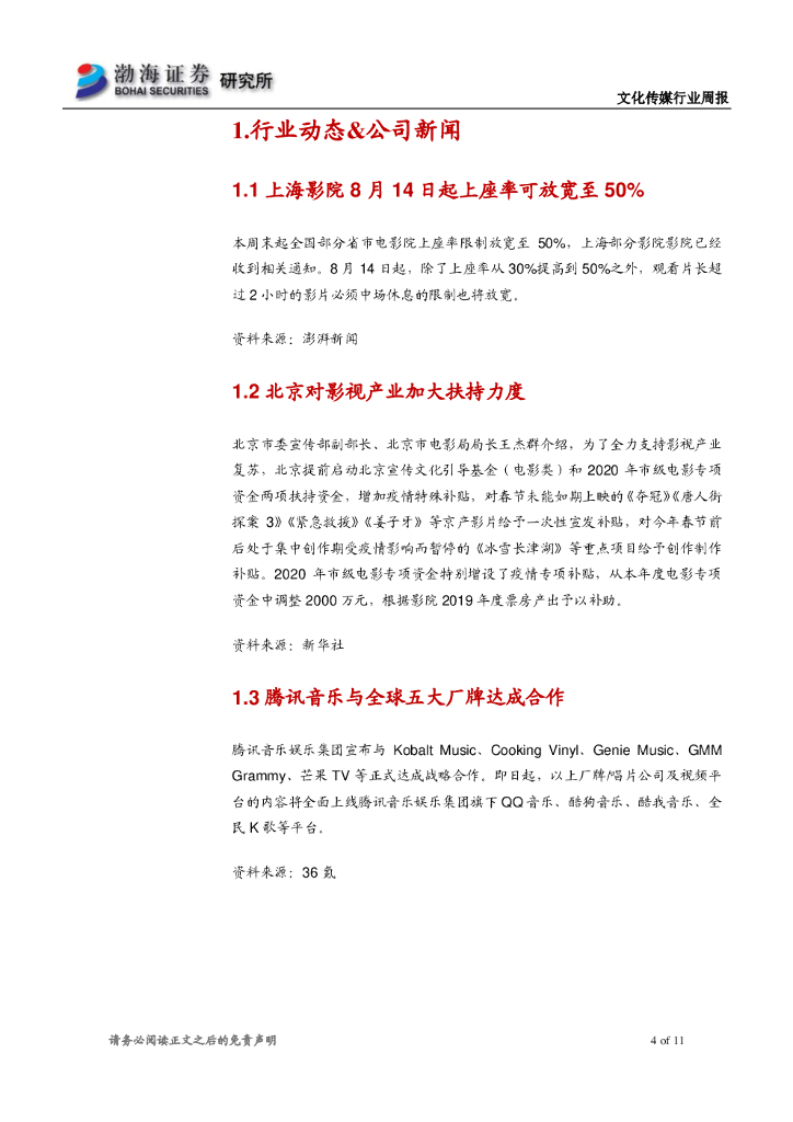 渤海证券:文化传媒行业周报:行情表现平淡,热门电影陆续定档.pdf