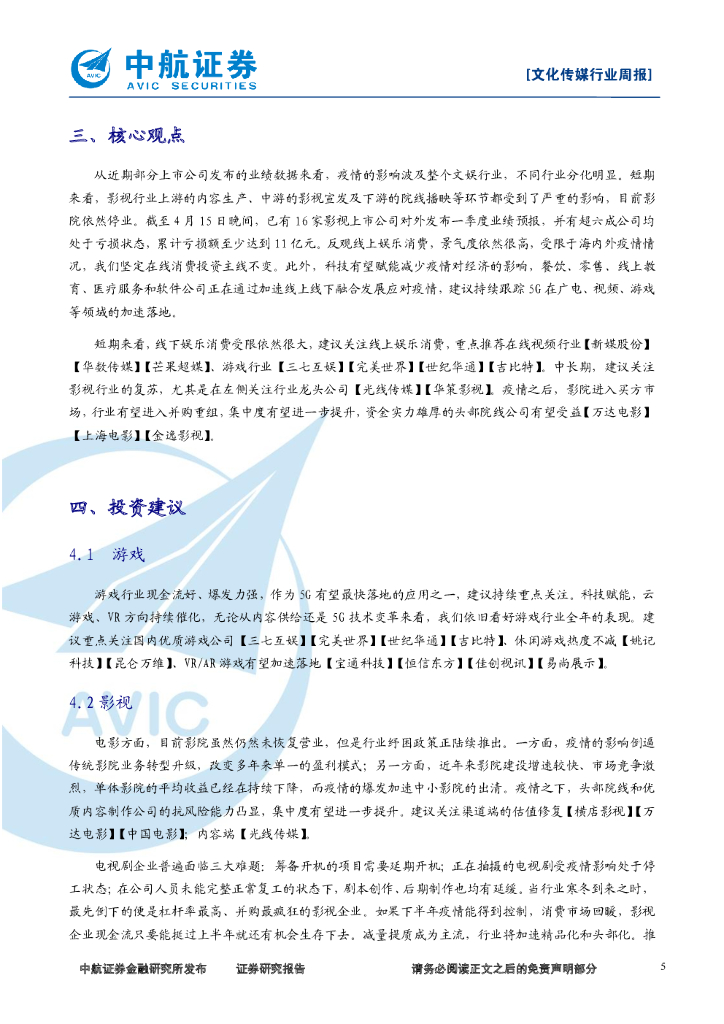 中航证券:文化传媒行业周报:影视股受疫情重创,建议关注在线娱乐细分领域.pdf