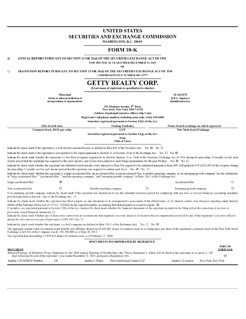 Getty Realty Corp.(GTY)2023财年年度报告(英文版).pdf
