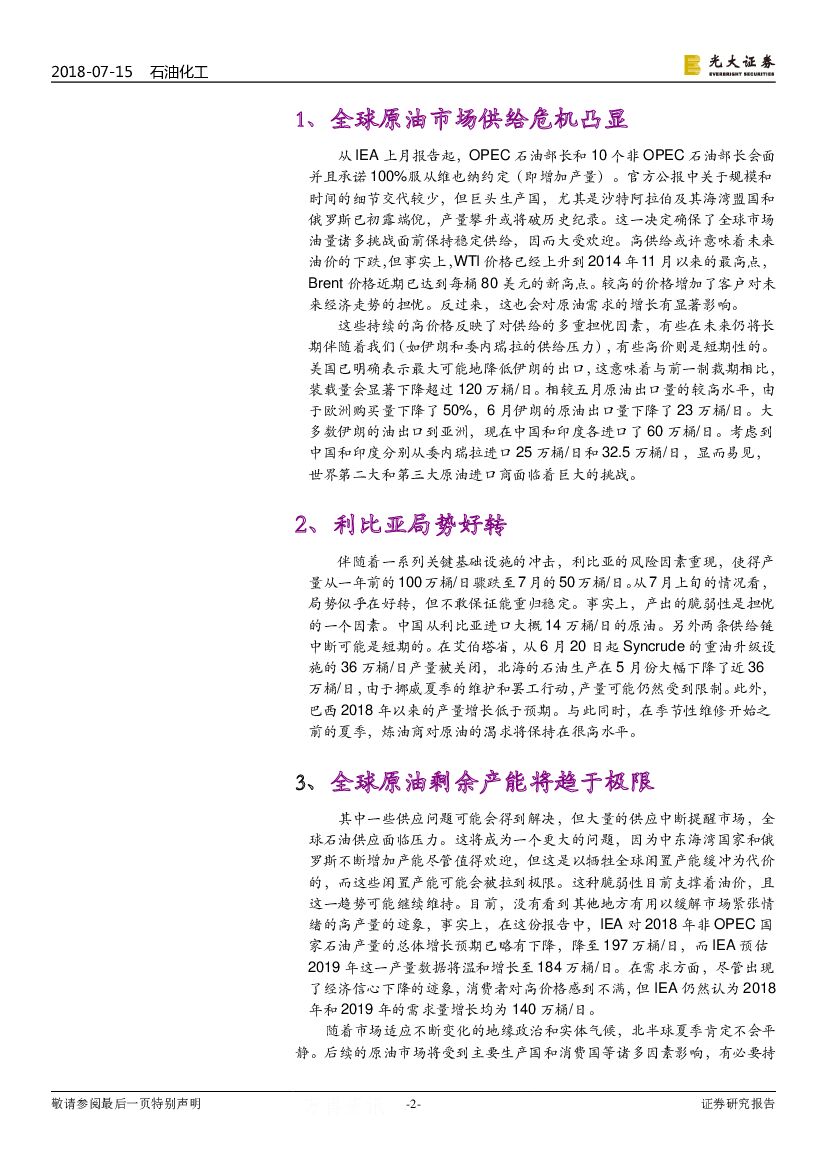 光大证券:IEA2018年7月月报点评:全球原油剩余产能将趋于极限.pdf