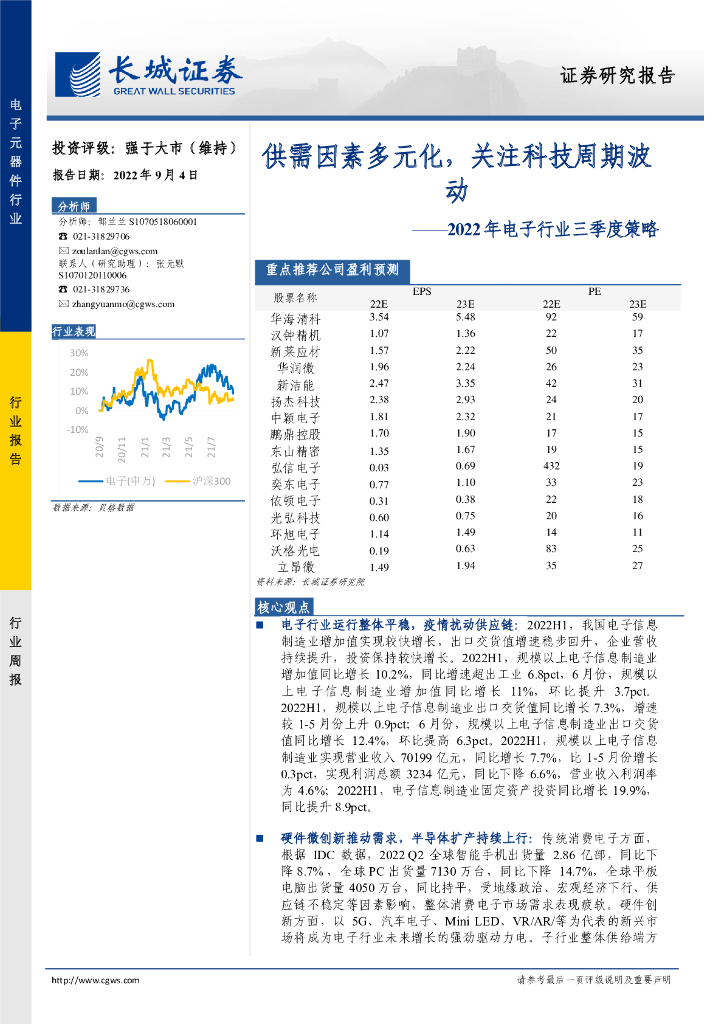 长城证券:2022年电子行业三季度策略:供需因素多元化,关注科技周期波动.pdf